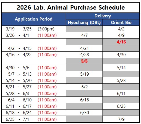 2026년 실험동물 구입일정 및 주문 방법 (Lab. Animal Purchase Schedule & How to order)